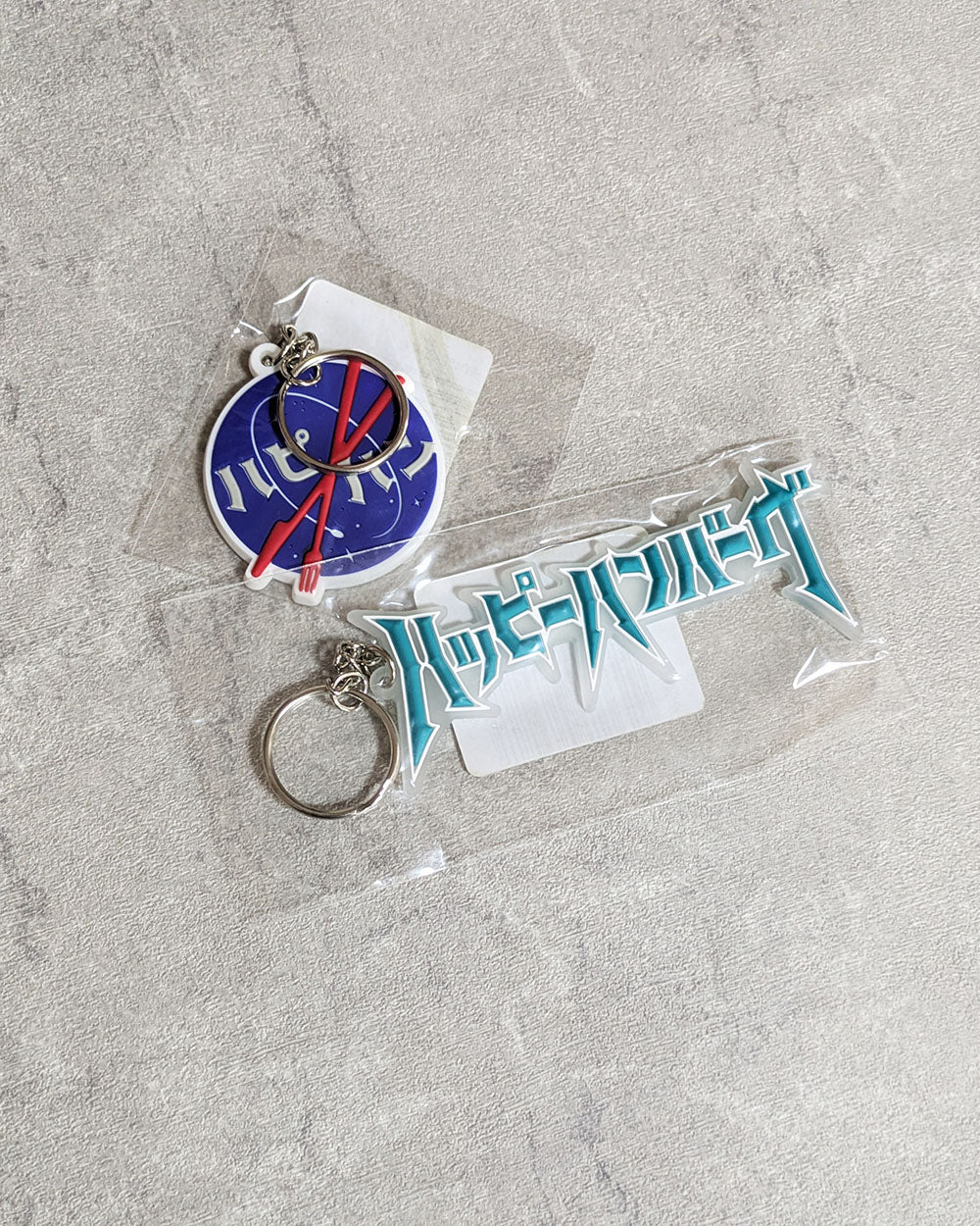ハッピーハンバーグの新しいラバキーができました。3種のデザインが新たに登場です。定番のアイテムとも言える刺繍キャップをモチーフにしたデザイン、ロックバンドロゴ、スペースロゴの3種類。